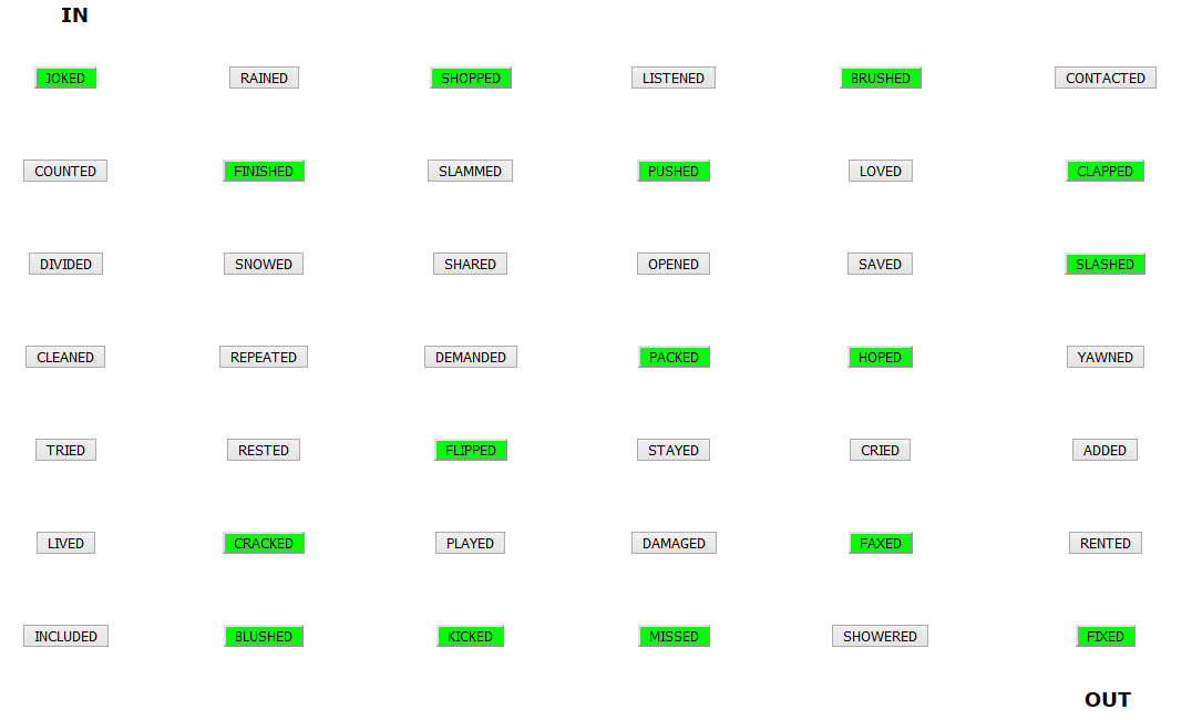 Pourrez-vous afficher en vert les seuls 16 mots qui se terminent par le son /t/